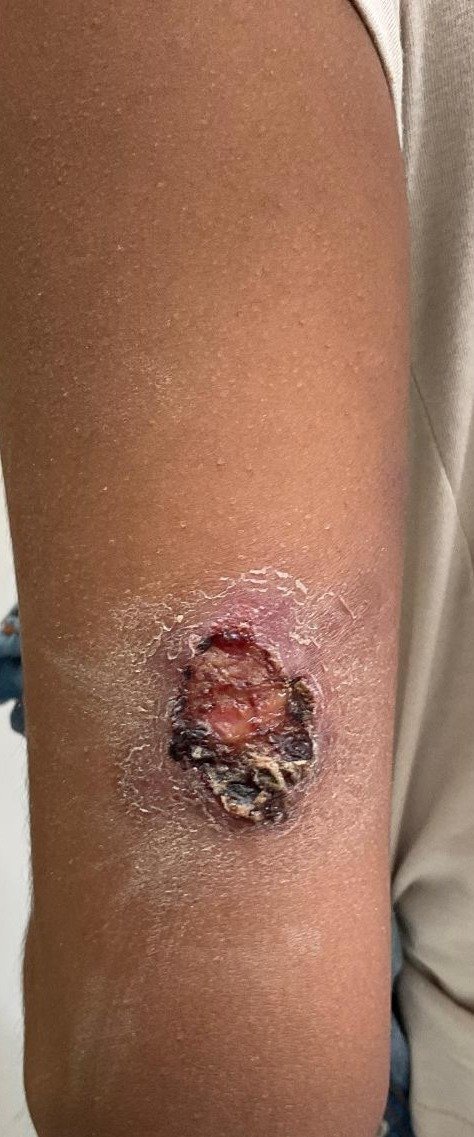 Ulcerated lesions, as well as sporotrichoid presentation, may occur in a range of differential diagnoses, including cutaneous leishmaniasis, mycobacterial infections, other mycoses, and even neoplasms. Clinical history and epidemiological context should be considered, and appropriate laboratory tests performed.1